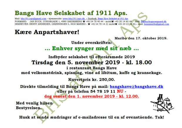 Indbydelsen kan bedst printes fra følgende link: Indbydelse til Efterårsmøde 2019