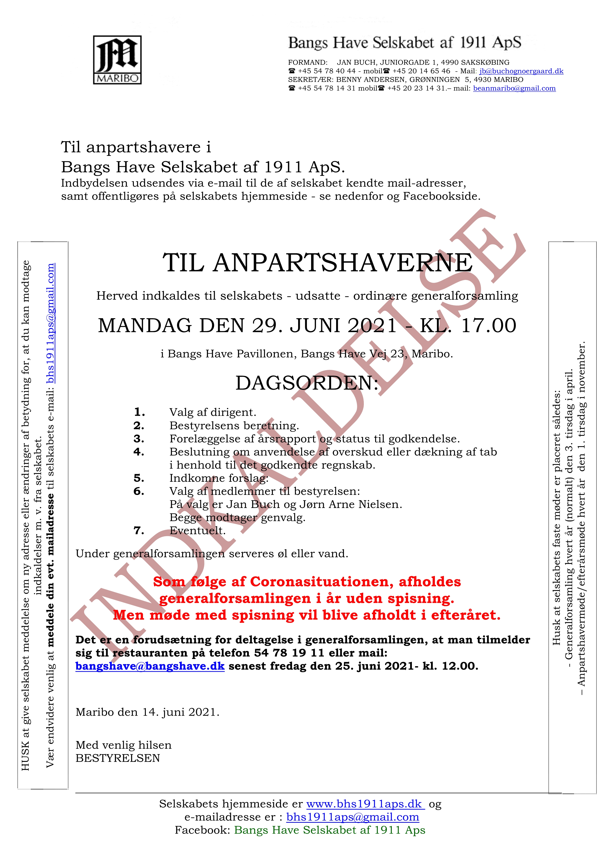 Årets generalforsamling blev afholdt tirsdag den 29. juni 2021 kl. 17.00