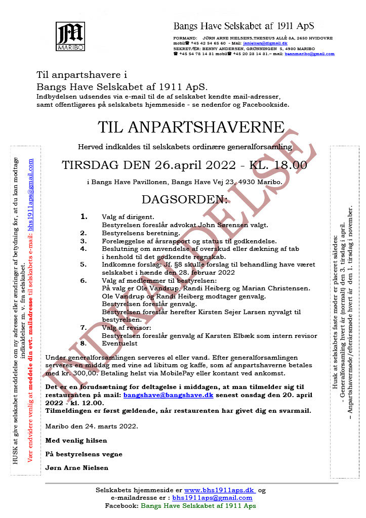Årets generalforsamling blev afholdt tirsdag den 26. april 2022 kl. 18.00