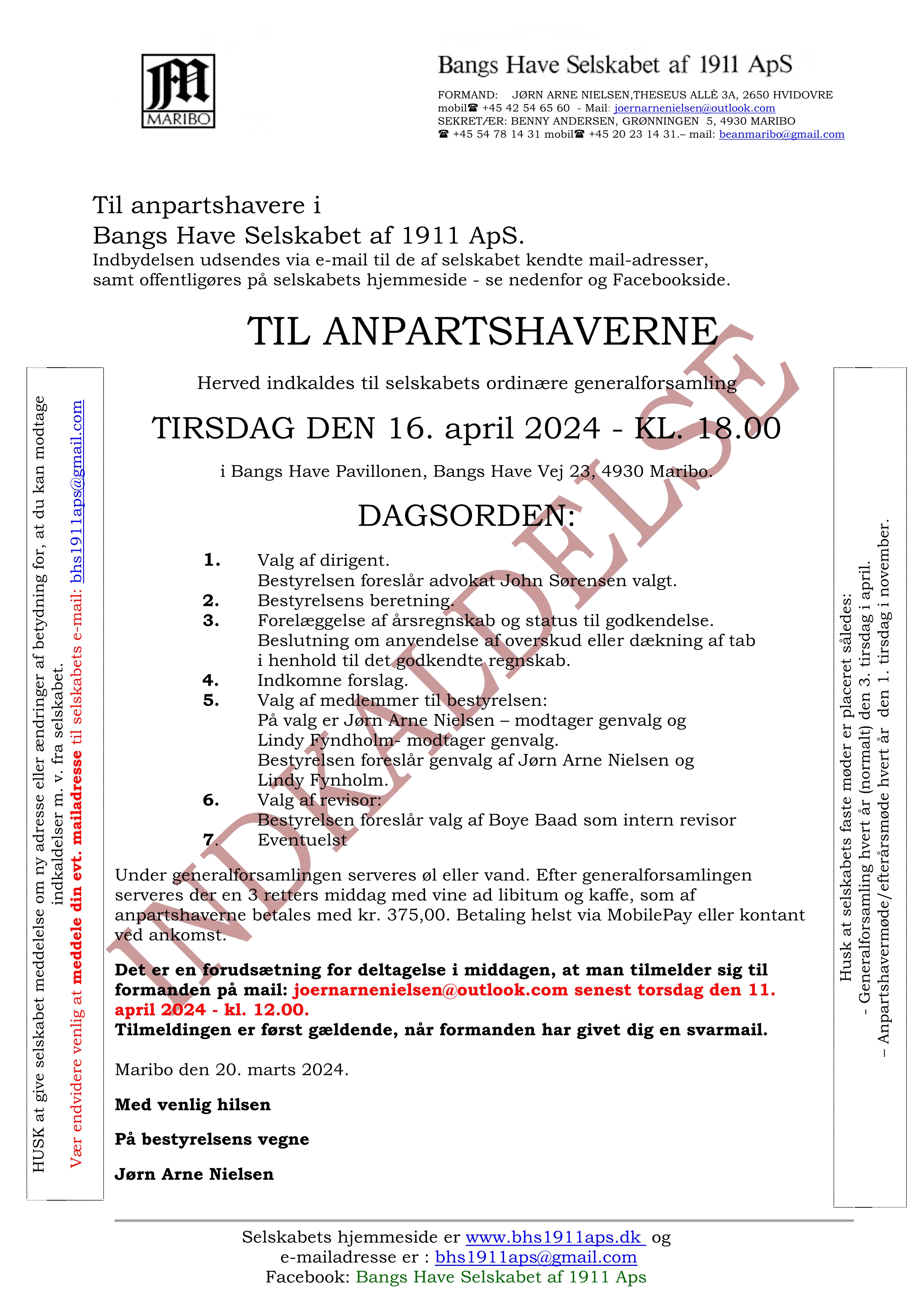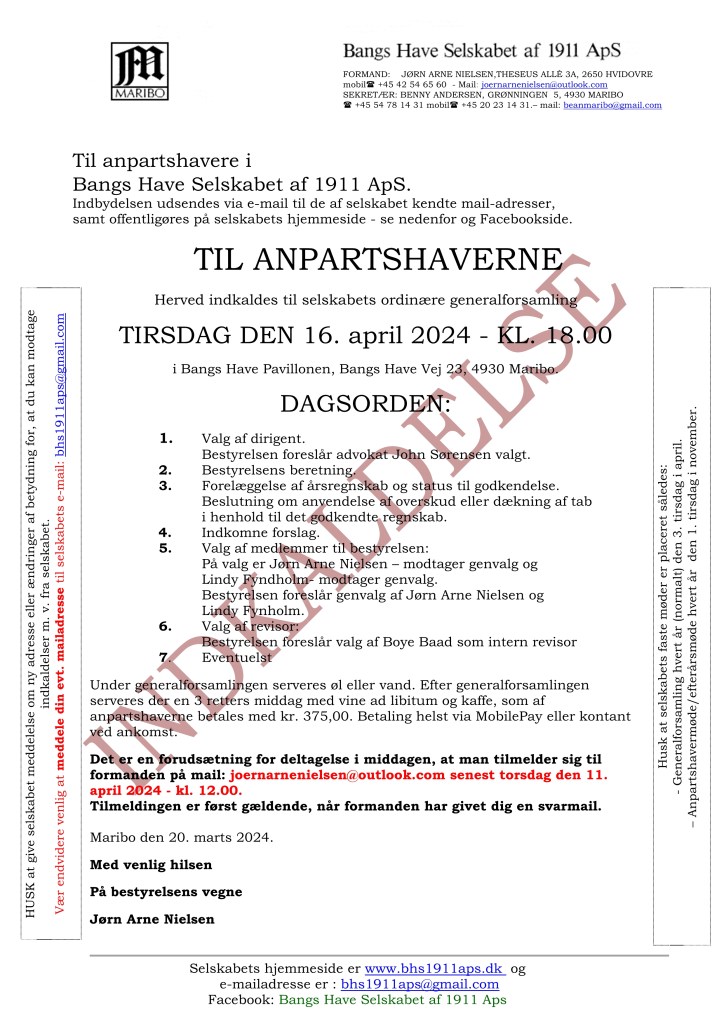Indkaldelse til generalforsamlingen