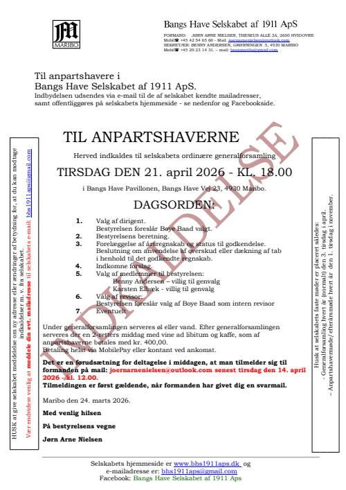 Indkaldelse til generalforsamlingen